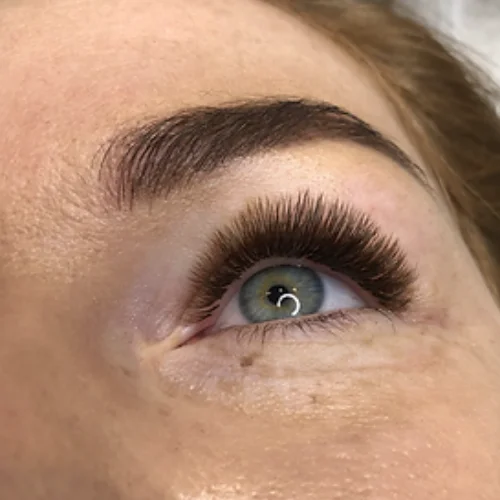 During volume extensions, a tuft of eyelashes is created from two, three or more artificial eyelashes and then applied to your natural eyelashes.